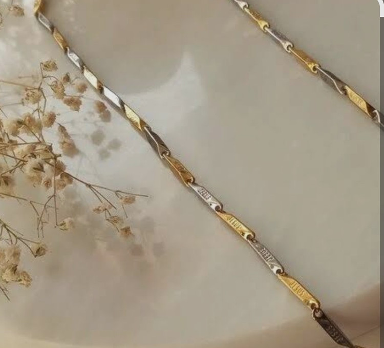 گردنبند کبریتی دورنگ نقره ای و طلایی و رنگ نقرهای