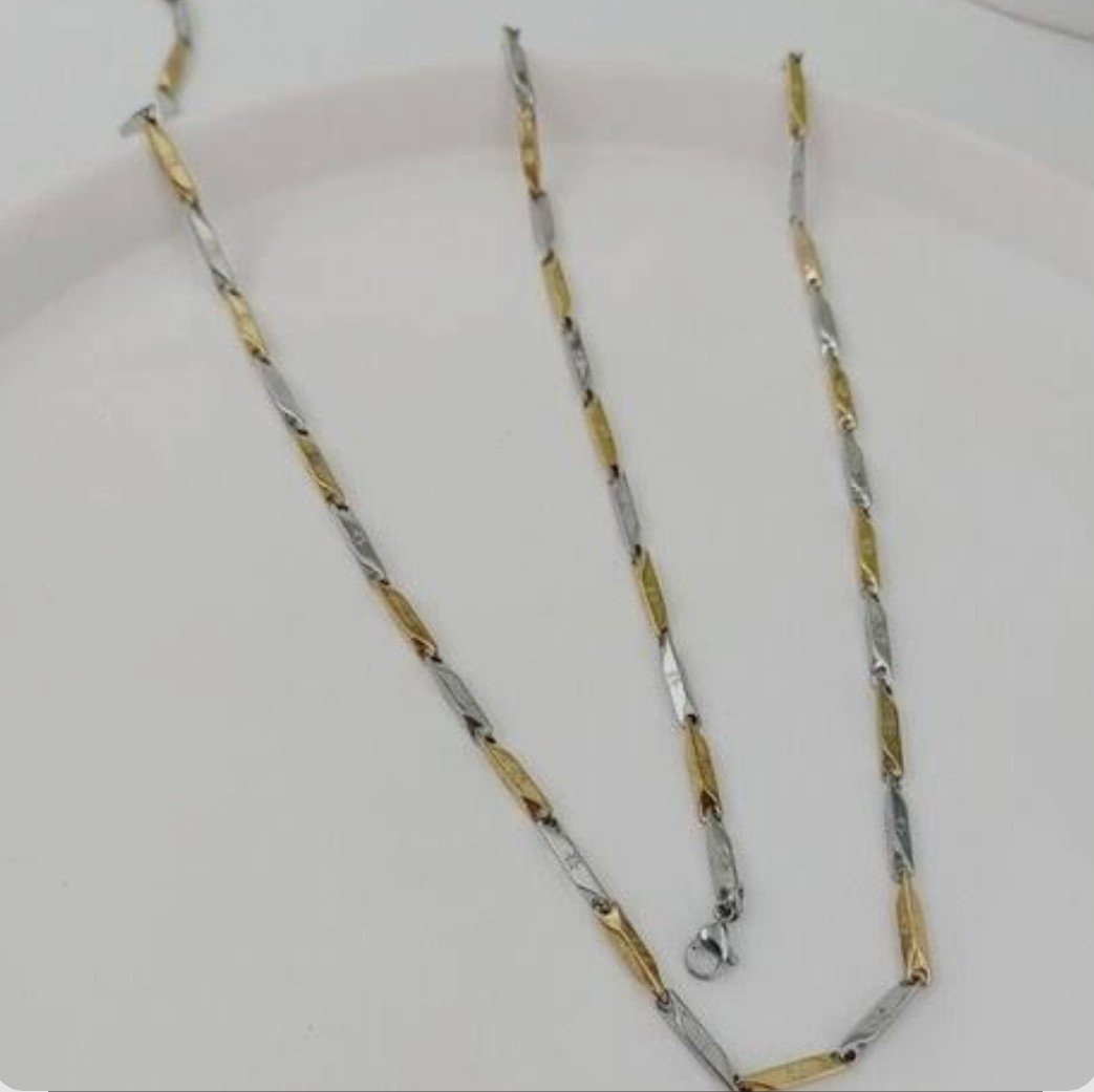 گردنبند کبریتی دورنگ نقره ای و طلایی و رنگ نقره‌ای